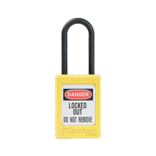 CANDADO DIELECTRICO MASTER LOCK DE TERMOPLASTICO AMARILLO GRILLETE DE NYLON DE 316 IN CLLAVE IGUAL